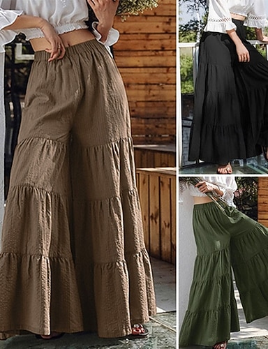 Naisten Puuvillaiset pellavahousut Housut Kesähousut Rantahousut Loma Perus Vapaa-aika Täyspitkä Korka vyötärö Tavallinen Leveä reisi Elastinen vyötärönauha Pehmeä Mukava Hengittävä Elastinen