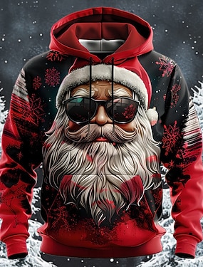 Christmas Miesten Joulupukki Hupparit College Muoti Vapaa-aika Pitkähihainen Hupullinen Loma Pyhäpäivä Katuvaatteet Rubiini Viininpunainen Sininen Apila Painettu Edessä tasku 봄 & Syksy Suunnittelija