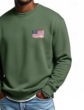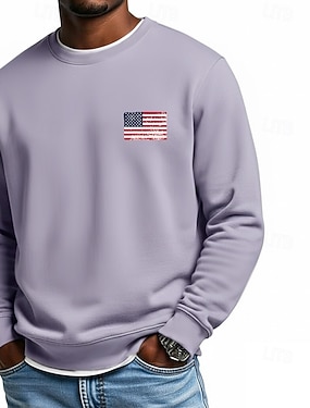 4. heinäkuuta 2026 250. muistopäivä miesten katumuoti graafinen Yhdysvaltain lippu pyöreä kaula pitkähihaisessa hupparissa rentoa ulkoilua varten katukulttuuriin