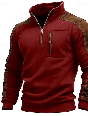 Miesten College Fleece-collegepaita Aja sivuun Quarter vetoketjullinen collegepaita Musta Valkoinen Viini Rubiini Khaki Pystykaulus Tavallinen Urheilu ja ulkoilu Kausaliteetti Päivittäin Katutyyli