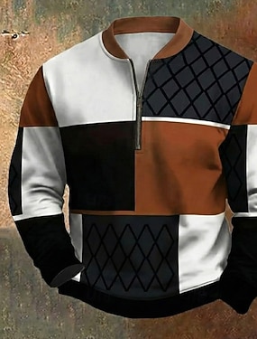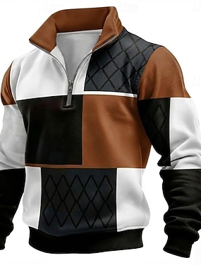 miesten neljännesvetoketjullinen geometrinen väriblokki-collegepaita tilkkutäkki pystykaulus vapaa-ajan toppi vaatteet s m l xl xxl xxxl