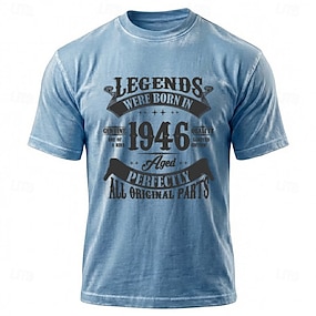 80-vuotissyntymäpäivälegendat syntyivät vuonna 1946. Aito, ainutlaatuinen, laadukas, rajoitettu erä, täydellisesti vanha, kaikki alkuperäiset osat. Miesten sininen mineraalipesu-t-paita, vaatteet,