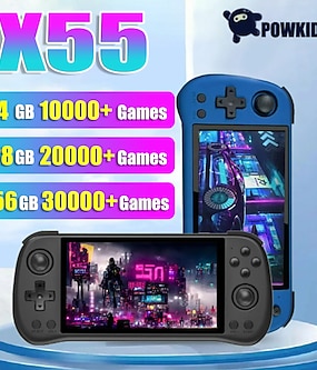 Powkiddy X55 Kannettava pelikonsole sisäänrakennetuilla peleillä IPS RGB-näyttö 5,5 tuumaa (256G 30000 peliä) täydelliset joululahjat ja syntymäpäiväjuhlat ystäville