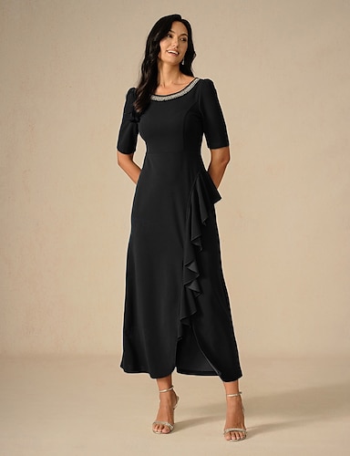 naisten midi-mekko viininpunainen epäsymmetrisellä paljeteilla pyöreä pääntie v-lovi yksityiskohta kolme neljäsosaa pituiset halkiohihat joustamattomat elegantit iltacocktailjuhlat polvipituiset eri