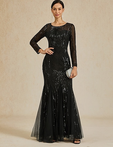 Naisten Maksimekko Trumpettimekko merenneitomekko Tyylikäs Juhla cocktail Cocktailjuhla Paljetti Kirjailtu Silmukka Normaali Yhtenäinen väri Pitkähihainen Tiukka pyöreä kaula-aukko Viininpunainen