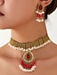 Jouluinen kulkunenkorusetti – punainen ja vihreä juhlakaulakoru, rannekoru ja korvakorut naisille