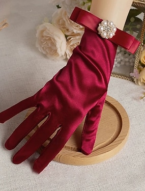 Teryleeni Rannepituus Käsine Tyylikäs Kanssa Ruseteilla / Tekohelmi / Puhdas Väri Häät / Juhlakäsine