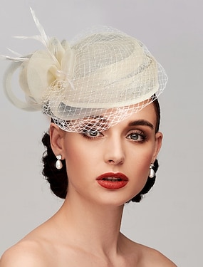 hatut Polyesteri Häät Syntymäpäivä Vintage söpö tyyli Kanssa Tylli Päähine Päähineet