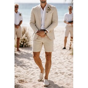 Miesten Pellava puvut Ranta häät Kausaliteetti Beesi Kesä Puku Lovikäänne Kevyt Vapaa-aika Yhtenäinen Normaali istuvuus 2-osainen setti Yksirivinen yksi nappi