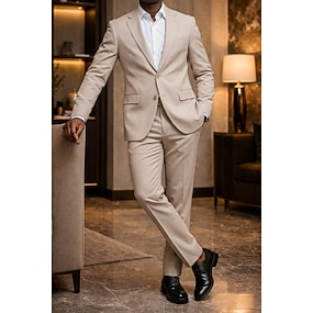Miesten Smokit Pellava puvut Ranta häät Häät Beesi Kevät, Syksy, Talvi, Kesä Puku Lovikäänne Kevyt Vapaa-aika Yhtenäinen Normaali istuvuus 2-osainen setti Yksirivinen yksi nappi