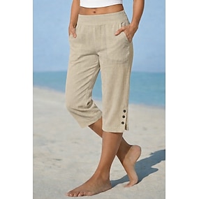 Naisten Puuvillaiset pellavashortsit Caprihousut Kiinalainen Shortsit Loma Perus Vapaa-aika Vasikka-Length Keskikorkea vyötärö Tavallinen Tasku Joustava vyötärö Mukava Hengittävä Joustamaton