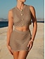 Naisten Uima-asut Peittää 2 kpl Hame Uimapuku Katkaistu Loma Ranta-asut Yhtenäinen väri Pyöreä kaula-aukko Hihaton Uimapuvut