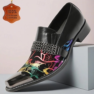 miesten abstrakti taidetuloste, slip-on-kengät, aitoa nahkaa, värikkäät, taiteellisen tyyliset pukukengät muotinäytöksiin, luoviin tapahtumiin ja illanviettoon