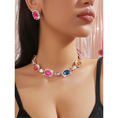 Naisten värikäs kristallikorusetti, kimalteleva strassi kaulakoru ja korvakorusetti juhliin, häihin &iltatilaisuudet, ylelliset asusteet