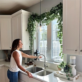 12 kpl eukalyptuslehtiseppele, keinotekoinen eukalyptuslehtipöytäliina, vihreän viiniköynnöksen seppele hääjuhliin, ruokapöytään, takkaan, makuuhuoneen seinäkoristeeksi, kevään ja kesän