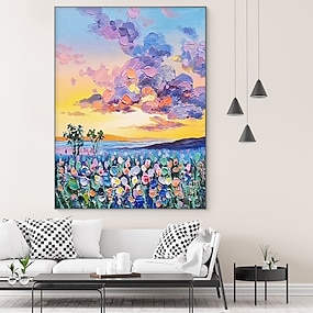 käsintehty käsinmaalattu öljymaalaus seinätaide luonnontaivas auringonkukka maisema kodinsisustus sisustus valssattu kangas ei kehystä venyttämätön