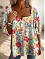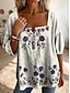 Naisten Pusero Painettu Kukka Kuvitettu Päivittäin Tyylikäs Vapaa-aika Puolihiha Nelikulmainen kaula-aukko Tavalliset topit Kausaliteetti Päivittäin Sininen Keltainen Rubiini Purppura Kesä Kevät