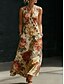 Naisten maksimekko pellavanomainen hengittävä kevyt kesämekko vaihteleva mekko A-linjainen mekko kesämekko lomakäyttö rento boho päivittäinen ranta lomapäivitys kukkakuvio 3/4-pituiset hihat pyöreä