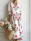 Naisten Maksimekko Kesämekko A linjainen mekko Loma Vapaa-aika Boheemi Hiekkaranta Loose Fit Kukka Kuvitettu 3/4 hiha V kaula-aukko Punastuvan vaaleanpunainen Oranssi Ruskea Apila Kesä Kevät