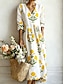 Naisten Maksimekko Väljä mekko Vapaa-aika Hiekkaranta Bile Loose Fit Kukka Kuvitettu Pitkähihainen V kaula-aukko Keltainen Apila Khaki Kesä Kevät