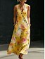 Naisten Maksimekko A linjainen mekko Loma Vapaa-aika ulko- Bile Normaali istuvuus Kukka Kuvitettu Hihaton V kaula-aukko Sininen Keltainen Fuksia Oranssi Kesä Kevät