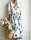 Naisten Maksimekko Keinopuuvillainen pellava Paitamekko Rento mekko A linjainen mekko Tyylikäs Vintage Päivittäin Loma Bile Loose Fit Kukka Pitkähihainen Paitapuserokaula-aukko Sininen Punastuvan