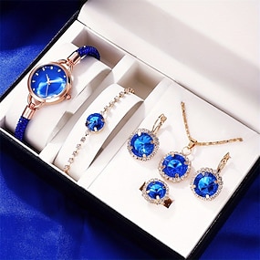 6 kpl/set naisten rannekello tyylikäs strassikvartsikello vintage analoginen rannekello ja korusetti äitienpäivälahja äidille