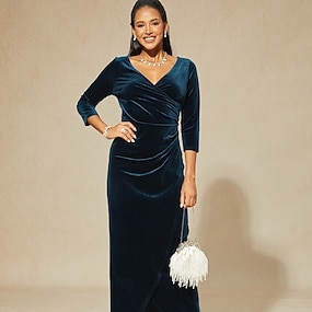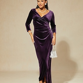 Naisten Maksimekko Kietaisumekko Tyylikäs Iltajuhlat Häävieras Epäsymmetrinen Ohut Yhtenäinen väri 3/4 hiha V kaula-aukko Viini