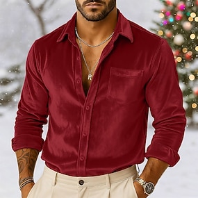 Miesten Paita Rento paita Joulupaita Samettipaita Viini Kuninkaallinen sininen Ruskea Apila Pitkähihainen Yhtenäinen väri Tavallinen Paitapuserokaula-aukko Karnevaali Joulu Tasku Vaatetus Sametti
