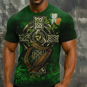 Pyhä Patrick Miesten Kuvitettu Risti T-paita Lyhythihainen paita T-paita Tee Lyhythihainen T-paita 3D-tulostus Tiukka pyöreä kaula-aukko Paita Päivittäin Suunnittelija Vapaa-aika Juhla Pyhän Patrikin