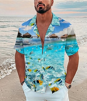 Miesten Maisemat Trooppinen Kalat Paita Havaiji paita Leirin paita Lyhythihainen Paita Sänkyjen avaus Muoti Havaijilainen Suunnittelija Kausaliteetti ulko- Katu Sininen Musta Laivaston sininen