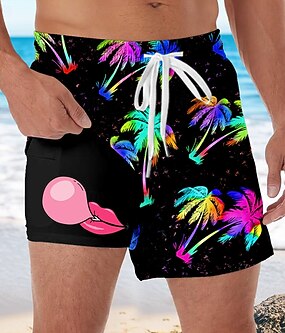 Miesten Kookospuu tipu Hauska Vuoratut shortsit 2 in 1 uimashortsit Uimashortsit Keskivyötärö Havaijilainen Pyhäpäivä Sivutaskut Compression Linerin kanssa Joustava kiristysnyöri vyötäröllä