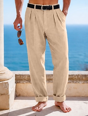 Miesten Pellavahousut Kiinalainen Kesähousut Suora jalka Tavallinen Mukavuus Hengittävä Täyspitkä Kausaliteetti Päivittäin ulko- Loma Muoti Musta Valkoinen Joustamaton