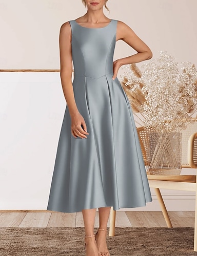 A-linja Polven yli Tanssiaismekot Tyylikäs Juhla Hihaton Tiukka pyöreä kaula-aukko Kotiinpaluujuhla Cocktailjuhla Satiini kanssa Laskokset