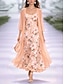 Naisten Mekkosetti A linjainen mekko Tyylikäs Loma Kukka Kuvitettu Monitaso Painettu Midimekko 3/4 hiha Tiukka pyöreä kaula-aukko Päivittäin Punastuvan vaaleanpunainen Rubiini Kesä Kevät Normaali