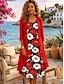 Pääsiäinen Naisten Midimekko A linjainen mekko Loma Vapaa-aika Boheemi Normaali Kukka Kuvitettu 3/4 hiha V kaula-aukko Sininen Punastuvan vaaleanpunainen Purppura Apila Kesä Kevät Syksy Talvi