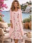 Naisten maxi-mekko 2 osainen mekko setti kesämekko liukusäädin loma virallinen boho loma löysä istuvuus kukkagraafi 3/4 pituiset hihat hihaton V-pääntie vaaleanpunainen kesä kevät
