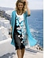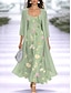 Naisten mekkoasetelma maksimekko kesä mekko loma rento ombre kukkapainatus 3/4-pituiset hihat pyöreä pääntie häät vieraalle syntymäpäivä vihreä harmaa kesä kevät säännöllinen istuvuus
