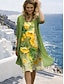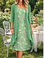 Naisten valmistujaismekko Midi-mekko Chiffon-mekko Shift-mekko Kesämekko Tyylikäs Loma Virallinen Virallinen Häälahja Päivittäinen Loose Fit Kukka Graafinen Puolihihainen Crew Neck Vihreä Kesä Kevät