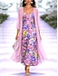 Naisten kaksiosaiset mekot midi-mekko takilla elegantti A-linjainen mekko puolihihainen juhla puolimuodollinen kukkakuva V-kaula-aukko häät vieras päivittäinen sininen purppura vihreä säännöllinen
