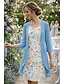 Naisten Midimekko Kotelomekko Mekko ja takki Tyylikäs cocktail Puolimuodolliset mekot Muodollinen Juhla Häävieras Normaali Kukka Pitkähihainen Tiukka pyöreä kaula-aukko Sininen Kevät Syksy Talvi