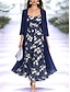 Naisten valmistujaismekko Midi Mekko Kaksi Osaa Mekko Setti Kukka Printti Pyöreä Kaula-aukko Elegantti Klassinen Loma Puolipitkät Kesä Kevät