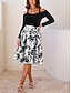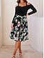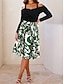 Naisten Midimekko Rento mekko Väljä mekko Muoti Moderni Päivittäin ulko- Loma Normaali Kukka Trooppinen Pitkähihainen V kaula-aukko Apila Kesä Kevät Syksy