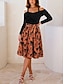 Naisten Midimekko Kotelomekko Väljä mekko Juhla Vapaa-aika Boheemi Juhla Häävieras Päivittäin Normaali Kuvitettu Paisley-kuvio Tribaali Pitkähihainen Tiukka pyöreä kaula-aukko Tumman harmaa Kevät