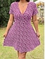 Naisten Mini mekko A linjainen mekko Loma Vapaa-aika ulko- Bile Normaali Kukka Lyhythihainen V kaula-aukko Sininen Musta Viini Purppura Kesä Kevät