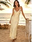 Naisten Pitkä mekko Maxi mekko Rento mekko Kesämekko Muoti Moderni Päivittäin Hiekkaranta Viikonloppu Normaali Tavallinen Hihaton V kaula-aukko Sininen Valkoinen Aprikoosi Kevät Syksy
