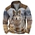 Miesten Metsästys Hirvet Puserot Quarter vetoketjullinen collegepaita Pitkähihainen Villapaita Stand-kaula-aukko Vintage retro Länsi-Cowboy 3D-tulostus Metsästys Talvi 봄 & Syksy