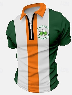 Pyhä Patrickin päivä Miesten Shamrock Vetoketju Polo Paidat Pitkähihaiset Polo Paidat Kauluspaita Vapaa-ajan Ulkoilma Festivaali Asu 3D Print Kevät Syksy Vihreä