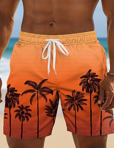 Miesten Kookospuu Auringonlasku Trooppiset kasvit Uimahousut Uimapuvut Uimahousut Surffishortsit Keskivyötärö Havaijilainen Rantaloma Sivutaskut Verkkovuori Joustava kiristysnyöri vyötäröllä