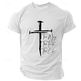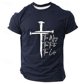 Miesten Raamattu Jeesus Usko T-paita Lyhythihainen T-paita 3D Printti Pyöreä Kaula Paita Muoti Urheilukäyttö Kadulla Ulkoilu Päivittäinen Musta Valkoinen Beige Kesä Kevät Vaate